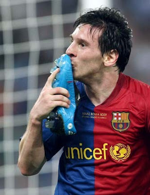 Para ilustrar esta nota, dos curiosidades: los “baberos” de la triple corona que el diario Mundo Deportivo propuso para que los hinchas disfruten la final de la Champions League contra el Manchester United, y dos imágenes de Lionel Messi, tras su gol, besando su botín adidas F50i con los colores argentinos, en una final en la que ambos equipos vistieron Nike, más allá de haber hecho el tanto de cabeza y no con su pie…