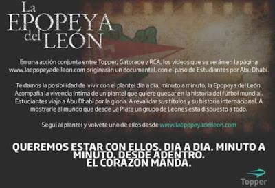 “La Epopeya del León” es una acción conjunta entre Topper, Gatorade y RCA que te da la posibilidad de vivir el día a día y minuto a minuto del plantel de Estudiantes de La Plata en su estadía en el Mundial de Clubes.