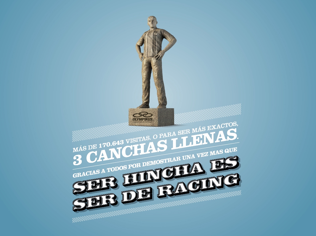 El próximo 8 de mayo, Olympikus presentará el Monumento al Hincha de Racing, en la previa del partido que disputarán la Academia y River en el estadio “Presidente Perón”.