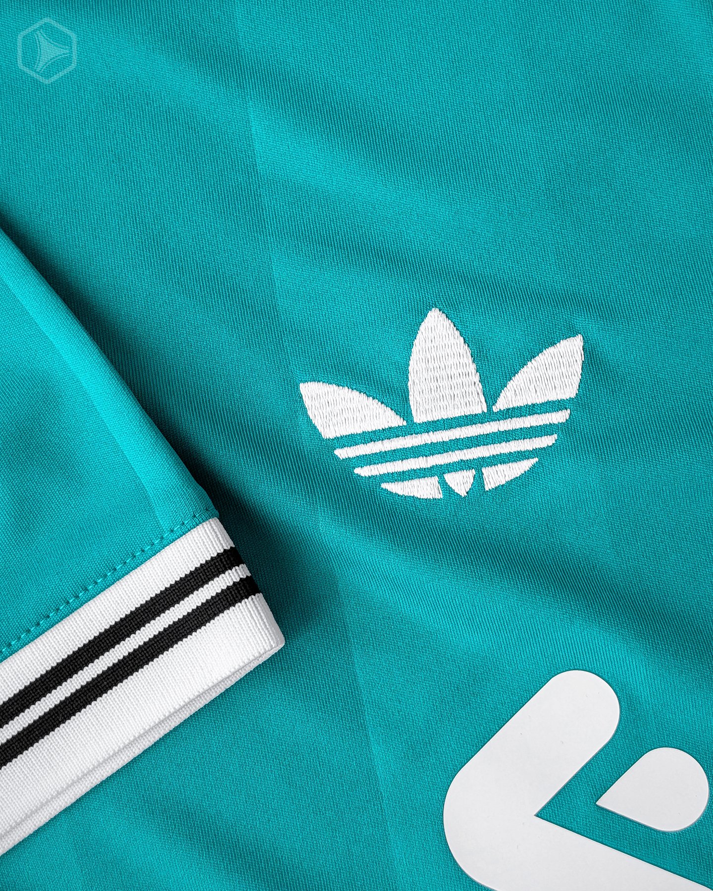 La nueva casaca es parte de la colección de clubes Elite de la firma alemana, que tiene como hilo conductor un diseño simple, inclinándose hacia lo retro. En esta ocasión, presenta un formato en dos tonos del característico verde agua, que ya usó en varias ocasiones la institución. Los bastones, sin trama alguna, se aplican en el frente, espalda y mangas; sin interrupción alguna (tampoco lo ameritaba). El cuello en ‘v’ con terminación cruzada y los puños brindan contraste al estar realizados en blanco, con un doble vivo negro.