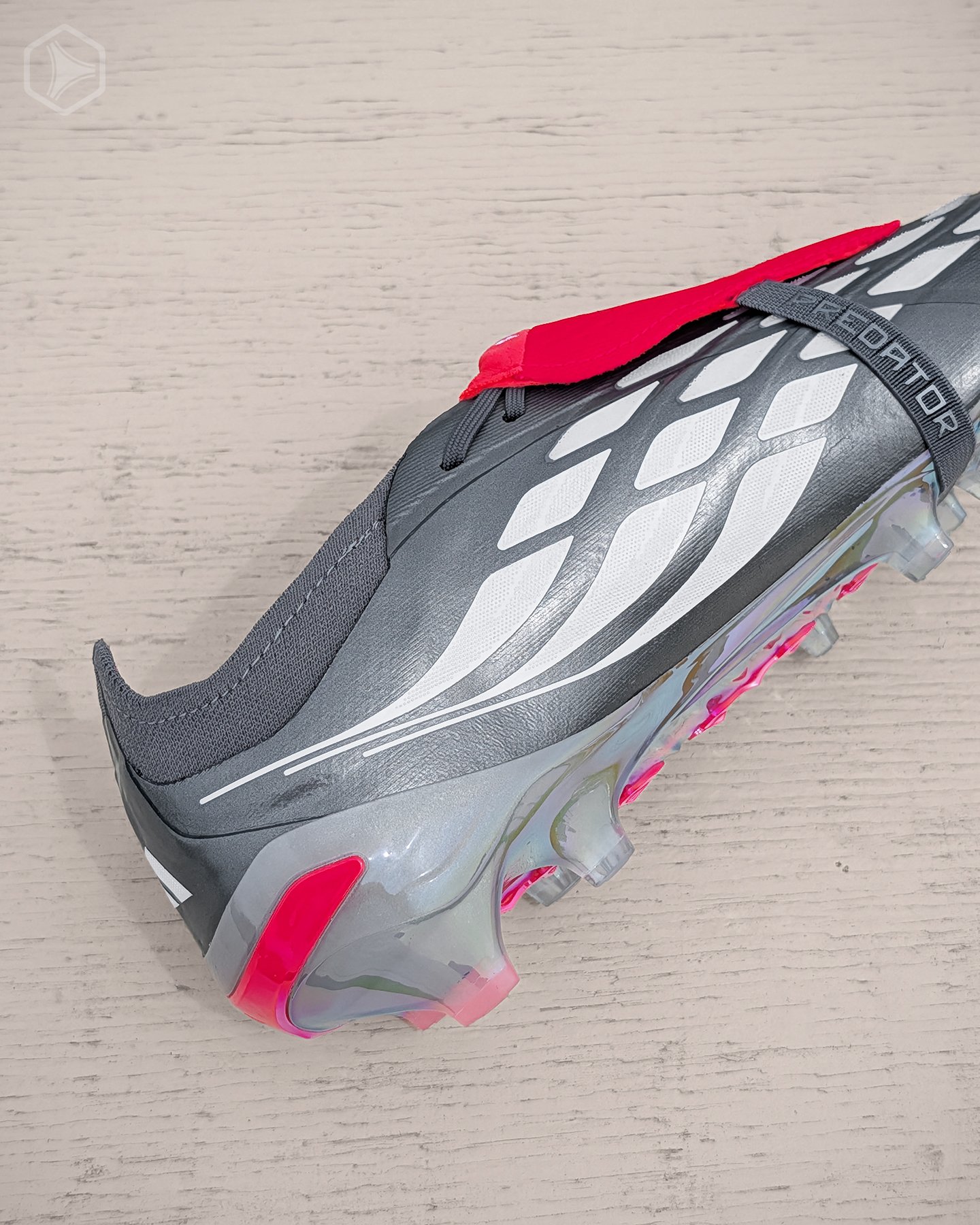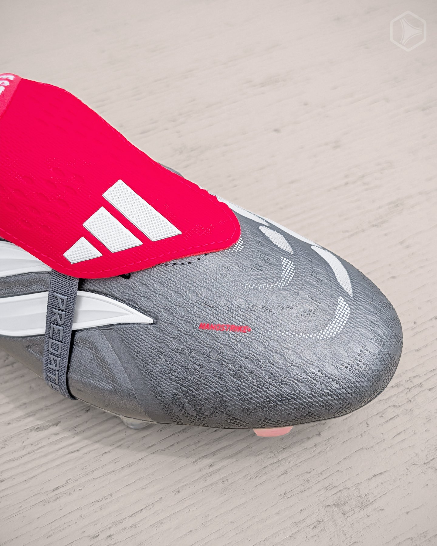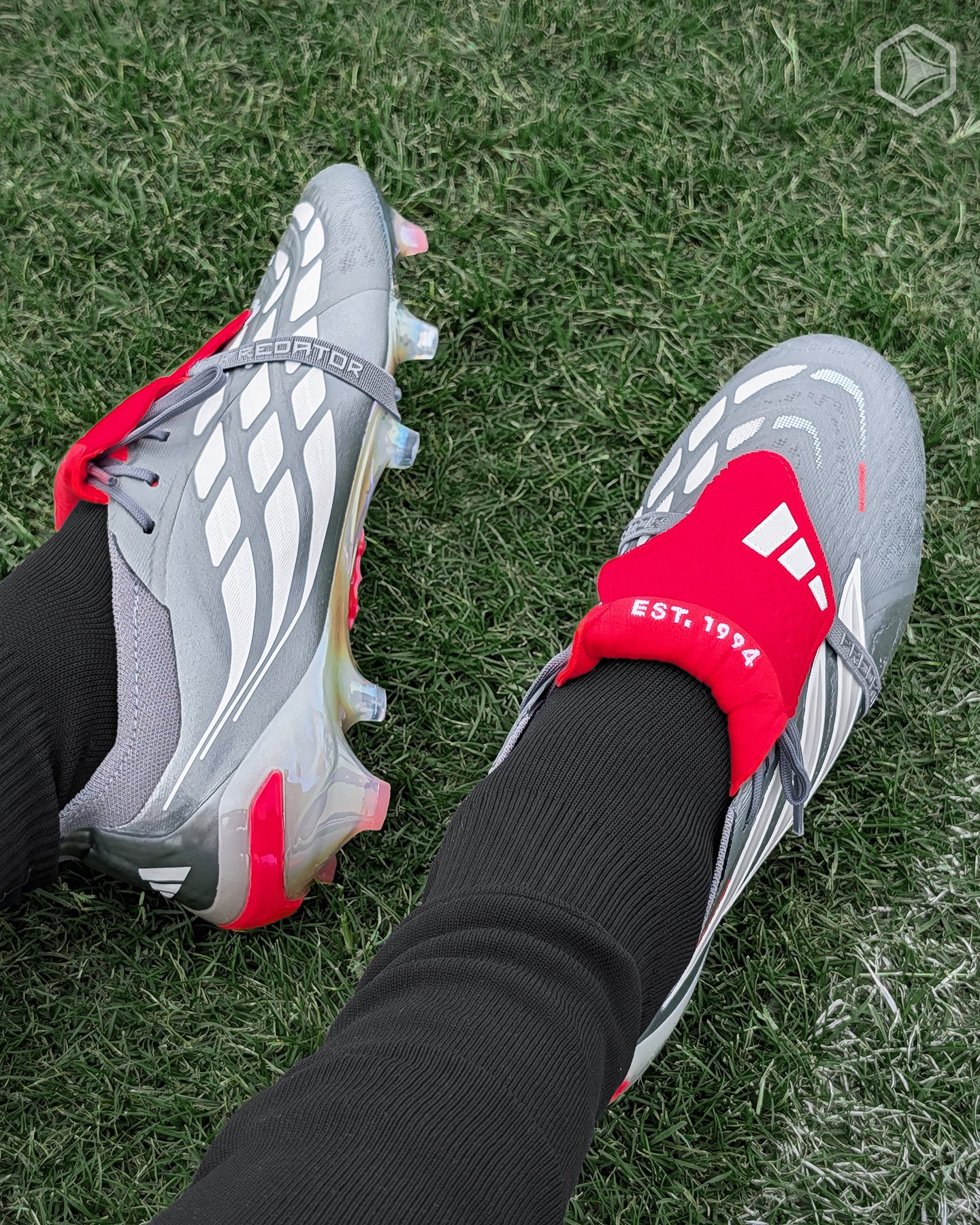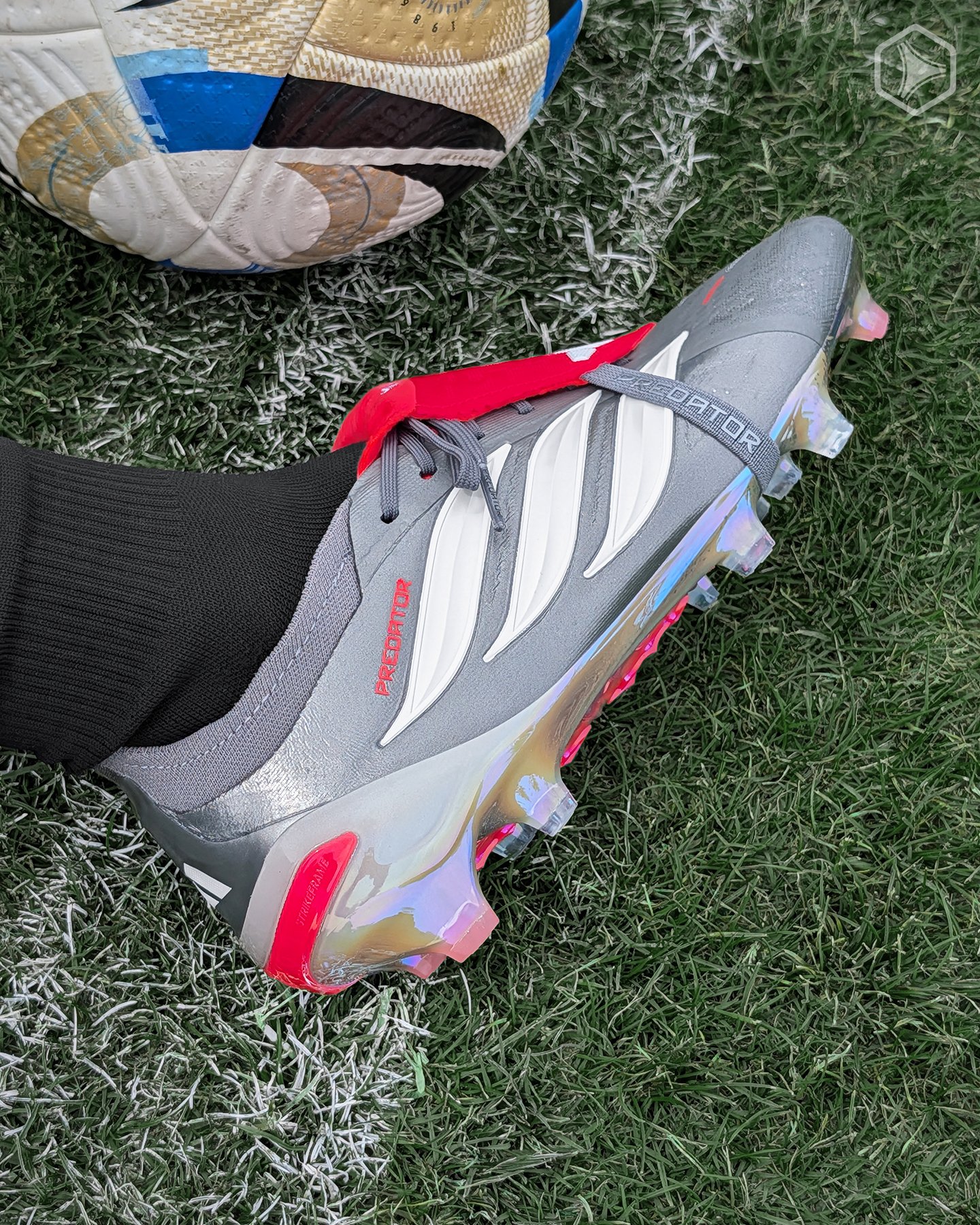 Los últimos lanzamientos de esta familia remitían a viejos modelos. Ésta no es la excepción, encontrándonos con una especie de híbrido entre los Predator Precision y Mania. Esto se plasma más que nada en su diseño, con las tres tiras ondeantes, que se extienden por todo el interno; así como en el colourway plateado, con la lengüeta resaltando en rojo.