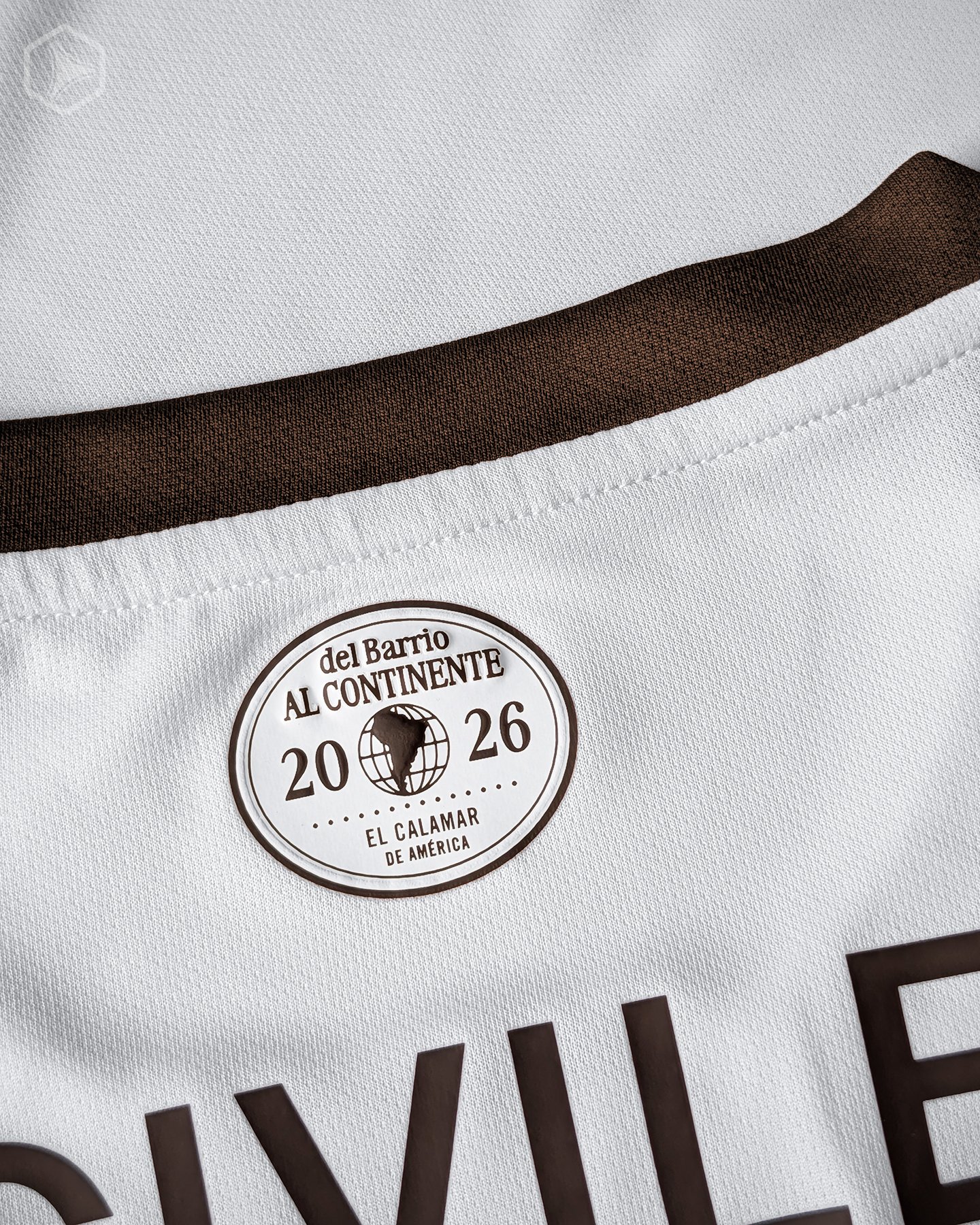 La misma también se aplica en el fondo del escudo de TPU con relieve, dejando la marca de PUMA en la identidad del club. Apliques en marrón destacarán también en el perímetro trasero del cuello, así como en parte de los puños, logrando un buen balance cromático. Factiblemente su punto menos agradable son los patrocinadores de las clavículas y el que está por debajo de la franja (¿destaca más que el main sponsor?) pero, como solemos decir, no somos quiénes para juzgar las necesidades económicas. En la nuca destaca un sello con el eslogan de la campaña “Del barrio al continente”, por su debut en la Libertadores.