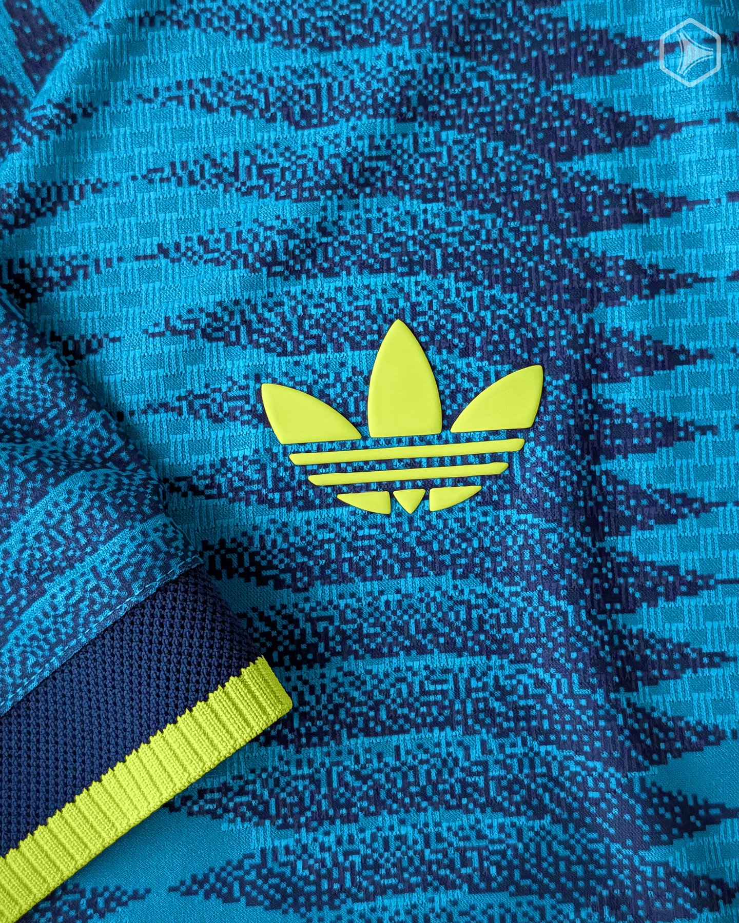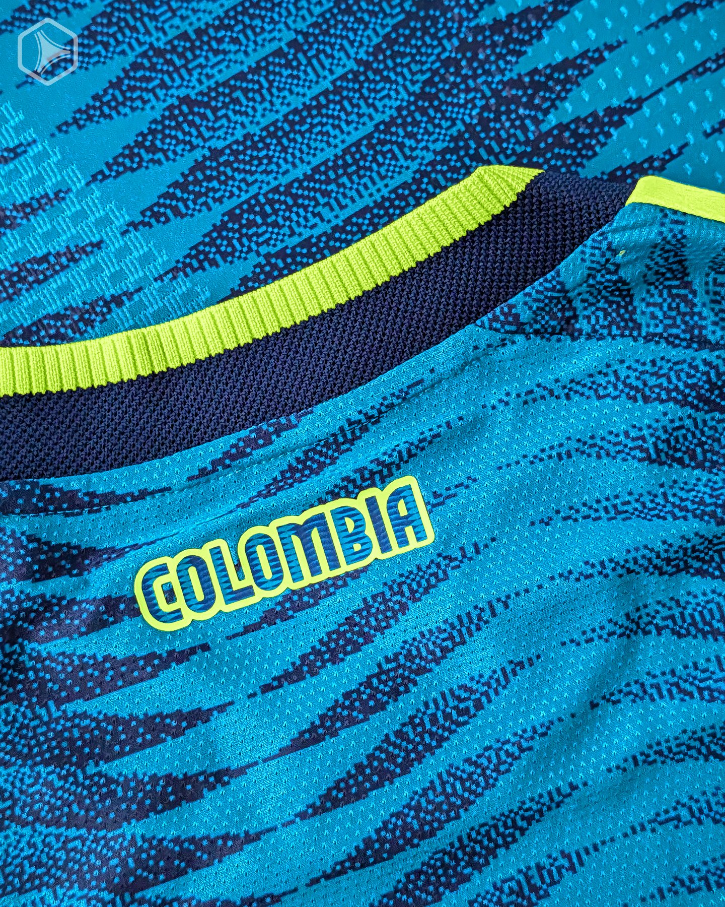 No necesariamente polémico, pero sí debatible, es la elección del tono secundario. Nos encontramos con una tonalidad amarillo/verde (no vamos a entrar en la discusión, ja) neón, bien llamativa. Visualmente resalta mucho, pero tal vez no nos transmite la vibra retro que sí nos gustaría que tenga, al emplearse el logo Trefoil. Un amarillo clásico, más propio de la Selección de Colombia, creemos que hubiera quedado mejor. Sí nos agradó mucho la estampa en la nuca que añade el nombre del país con un estilo alineado a lo que ofrece el resto de la equipación.