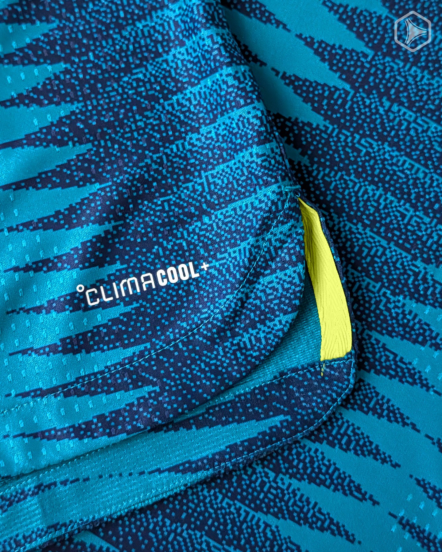 La versión jugador Climacool+ sigue la línea de lo que ya vimos con el jersey local de Colombia. Una tela con textura tridimensional y microperforaciones, que ayudan a mantener el cuerpo fresco ante las altas temperaturas. El escudo no es holográfico, sino que tiene un acabado engomado y suave al tacto. Sin llegar a desagradarnos, sentimos que pudo haber sido revuelta de una forma sustancialmente más elegante, y parecer un verdadero clásico de las tres tiras.