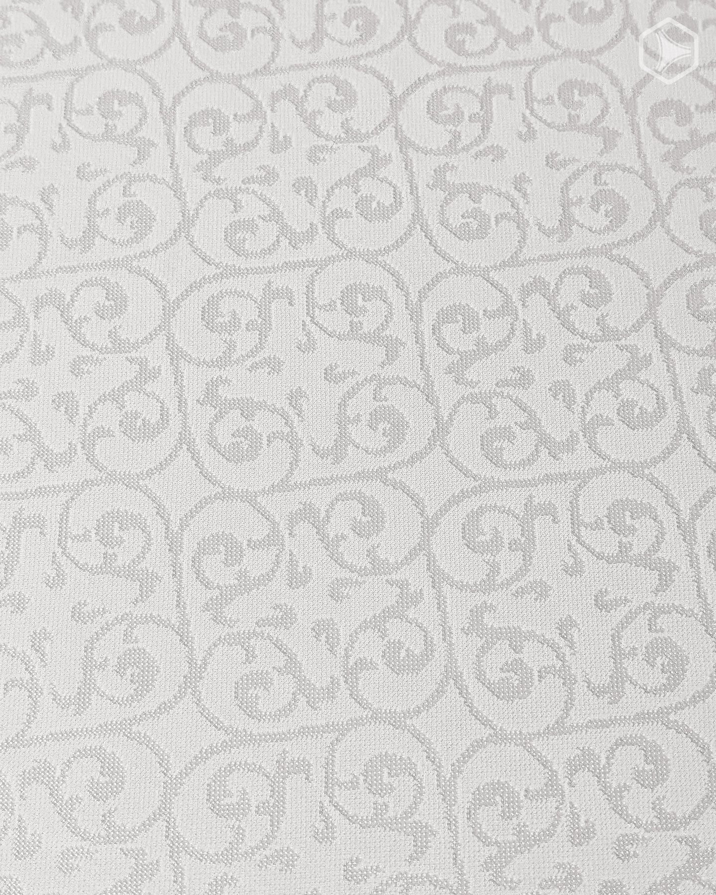 La postura adoptada fue notoriamente más conservadora que con su predecesora, por suerte (aunque el amarillo les trajo suerte). La base es del ya popular tono off-white: básicamente un blanco con un -muy- sutil tono crema, justamente para que no sea blanco puro y que tenga un estilo vintage. La tela posee una trama de ornamentos en jacquard, inspirada en los dibujos y gráficos de libros y manuscritos clásicos. Es casi imperceptible a simple vista, desde lejos, pero en el close-up resalta de una forma encantandora. El pattern se aplica a toda la superficie, incluyendo mangas y espalda.