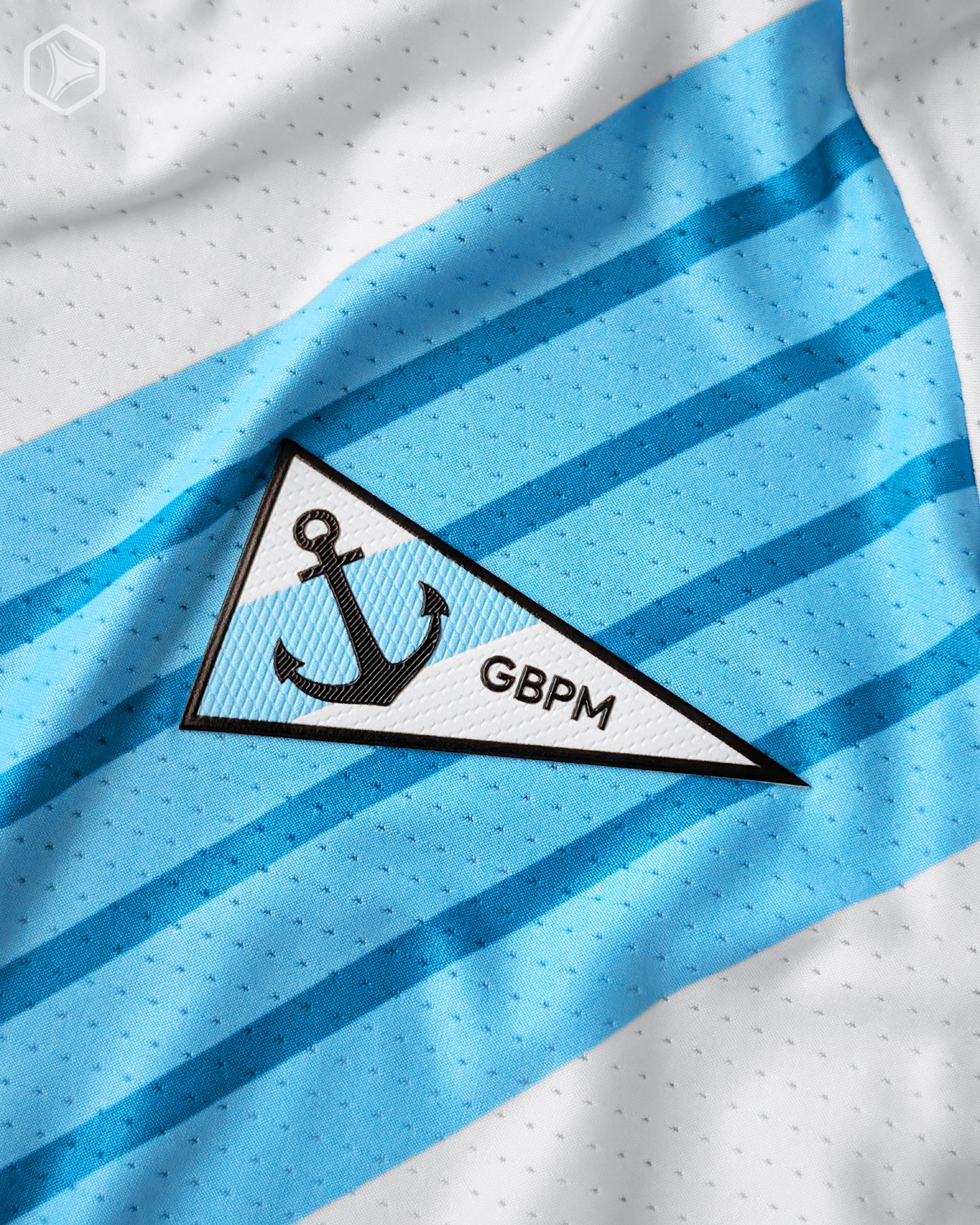 A diferencia de su antecesora (ver acá), el nuevo modelo titular tiene un approach algo más moderno, pero sin ser demasiado revolucionaria. Sobre la tradicional base blanca se añade una banda celeste decorada con cuatro franjas aplicadas en sobretono en su interior. Un recurso simple, pero placentero a la vista. Por suerte, la banda también se aplica en la espalda, logrando destacar su diseño desde todos los puntos de vista. El celeste proviene de uno de los primeros escudos (banderín) que tuvo la institución, que para este jersey se vio adaptado y modernizado.